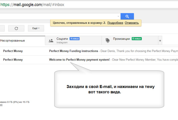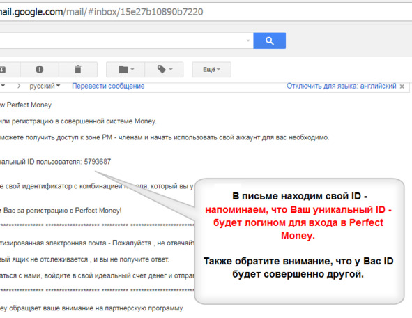 ЗАХОДИМ В СВОЙ E-MAIL И ОТКРЫВАЕМ ПИСЬМО ОТ PERFECT MONEY
