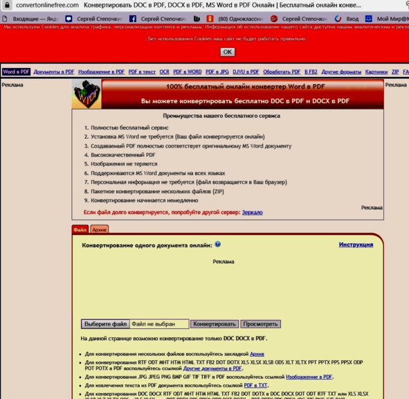 Здесь можно выбрать любой из предложенных системой, и провести конвертацию файла книги. Мне нравится этот конвертор по этой ссылке: https://convertonlinefree.com/WordToPDFRU.aspx (смотрите скриншот ниже):