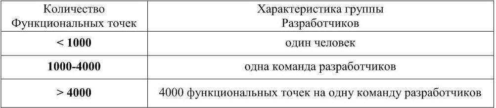 Оценка размера приложений производится на основе так называемых функциональных точек (экраны, сообщения, отчеты, файлы и т.п.) Подобная метрика не зависит от языка программирования, на котором ведется разработка. Размер приложений, разработанных по технологии RAD, для хорошо отлаженной среды разработки АИС с максимальным повторным использованием программных компонентов представлен в таблице 1.1.