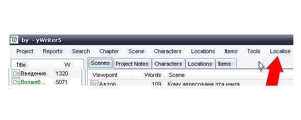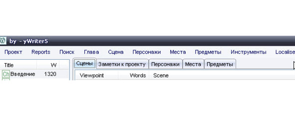 Программа англоязычная, но в yWriter – 5 здесь есть и русскоязычный интерфейс.
