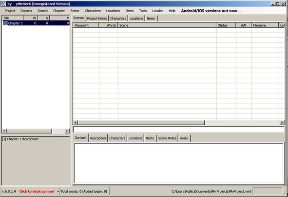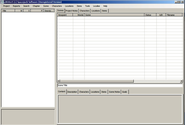 Так пятая и шестая версия очень похожи, а большинство пользователей пользуются все-таки еще пятой версией то рассмотрим дальнейшие действие именно с yWriter5. И так перед нами окно программы.