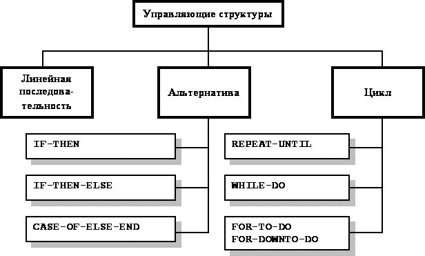 Управляющие структуры составляют основу языков программирования. Ключевых структур всего три: