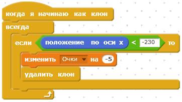 Теперь запрограммируем заставку «GAME OVER», которая появляется в случае проигрыша. У каждой буквы будет по два скрипта. Первый крипт у всех букв одинаковый.