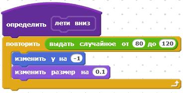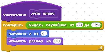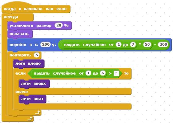 Настало время запрограммировать НЛО. У него будет самая сложная программа, в ней будут даже самодельные блоки, позволяющие НЛО двигаться по случайной траектории. Всего у НЛО будет десять скриптов. Первый скрипт.
