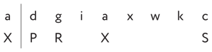 Помня, что у нас на букву может приходиться несколько символов, и ранее уже предположив, что символы x и k представляют одну и ту же букву, мы (разумеется, лишь те из нас, кто знает латынь) легко подберем сюда слово PROXIMIS (соседний).