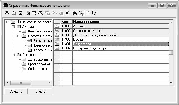 Количество финансовых показателей в каждой папке не ограничено и определяется только потребностями пользователей.