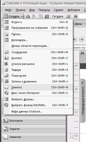 Если вы работаете в Word, Excel, интернет-браузере и т.п., можно просто выделить заинтересовавший вас фрагмент текста и перетащить его в Outlook. Заметка из этого текста создастся автоматически.