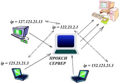 Базовый принцип сокрытия и/или подмены IP-адреса заключается в организации взаимодействия пользователя с ресурсом через некоторый промежуточный ресурс, который называется прокси-сервером. Задача прокси-сервера заключается в подмене истинного адреса пользователя на адрес, закрепленный за прокси (рис. 3.2.5.1).