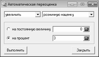 В данном окне осуществляется настройка параметров автоматической переоценки. Слева вверху находится раскрывающийся список, в котором нужно указать тип переоценки – дооценка (в данном случае нужно выбрать значение увеличить; оно используется по умолчанию, см. рис. 5.24), или уценка (в данном случае нужно выбрать значение уменьшить).