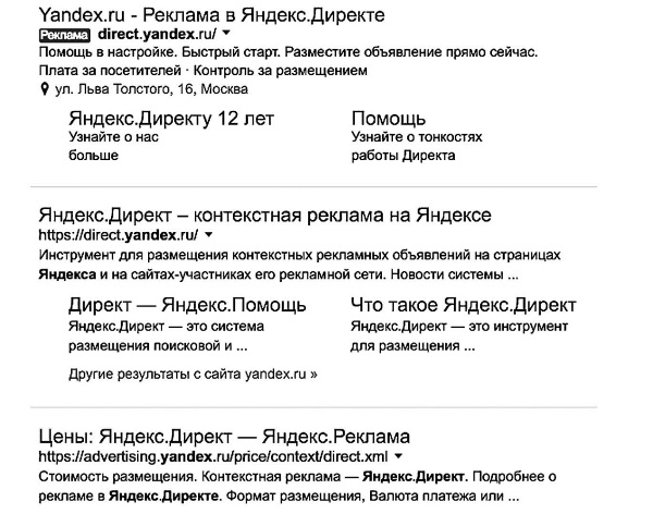 Страница контекстной рекламы но Яндексе