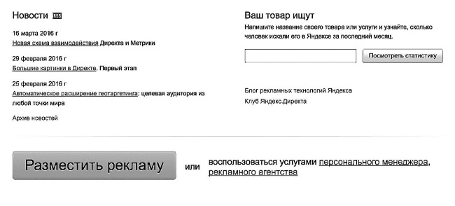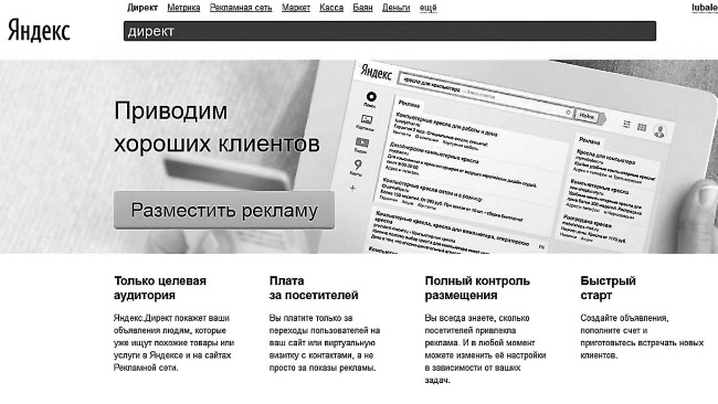 Рекламные страницы Яндекса
