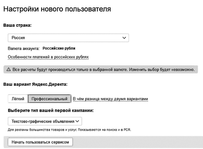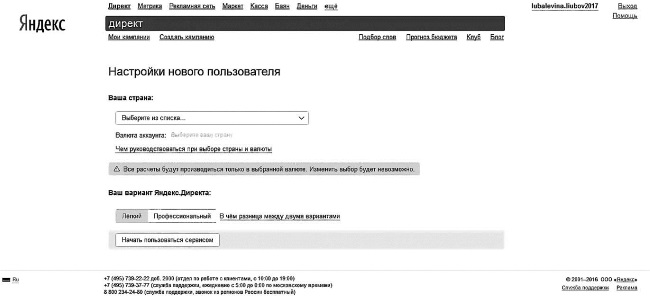 – вариант Яндекс Директа – Профессиональный.