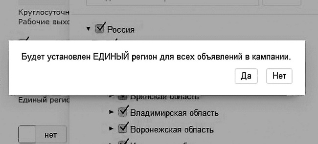Единый регион показов необходим для ограничения показов рекламных объявлений только по данному региону