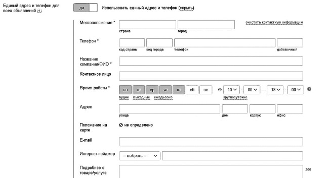Единый адрес и телефон для всех объявлений