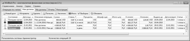 Чтобы просмотреть итоговую информацию о состоянии дебиторской задолженности в соответствии со списком долгов (см. рис. 1.13), нужно нажать кнопку Итого.