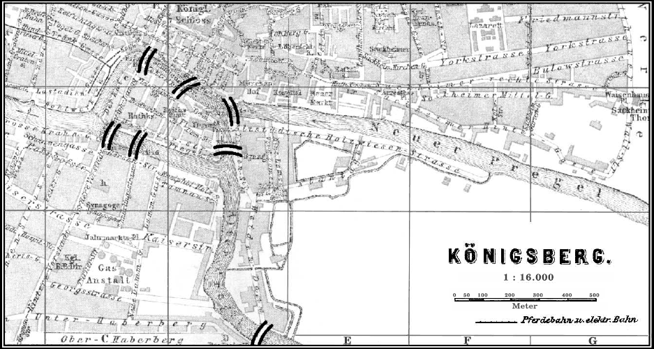 Рис. 3.8. Старинная карта мостов Кёнигсберга