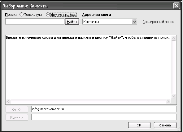 5. В появившемся окне «Выбор имен» выберите или введите адрес руководителя и нажмите «ОК».