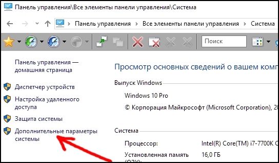 После установки твердотельного диска вы должны убедиться, что Windows не перемещает файл pagefile.sys на ваш стандартный (медленный) жесткий диск. Этот так называемый файл подкачки является расширением оперативной памяти и находится на вашем жестком диске. Грубо говоря, когда в Windows заканчивается объем ОЗУ, она начинает использовать память-заменитель (файл подкачки). Возможно, вы догадались, что ваш компьютер будет работать медленнее, если файл подкачки находится на медленном механическом жестком диске, особенно потому, что такие жесткие диски периодически отключаются Windows для экономии энергии (обычно через 15–30 минут, если они неактивны). Мы должны удостовериться, что файл подкачки находится на твердотельном диске. Перейдите в панель управления ? Система ? «Дополнительные параметры системы»: