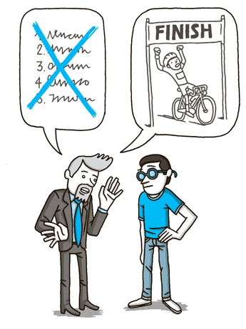 На карте исходные бизнес-гипотезы и влияний показаны в виде иерархии, поэтому расставлять приоритеты, касающиеся целых направлений разработки, легко. Если ситуация на рынке изменилась и одна из наших исходных гипотез утратила силу, то для нас не составит никакого труда понять, какие из предусмотренных элементов функционала больше не нужны и работу над которыми следует прекратить.