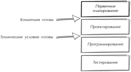 Рис. 4.1. Готовый концептуальный документ знаменует окончание фазы планирования, так же как готовность технических условий означает окончание фазы проектирования