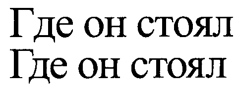 Рис. 37 Автоматическая регулировка межбуквенных расстояний в зависимости от кегля: текст без трекинга (вверху) и с тренингом (внизу)