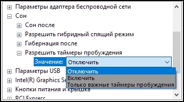 Обратите внимание, что с данного момента времени вам необходимо нажимать и удерживать кнопку питания в течение нескольких секунд, если вы желаете жестким образом отключить компьютер. Затем установите опцию «Разрешить таймеры пробуждения» на значение «Отключить»: