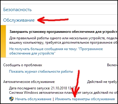 4) Перейдите в панель управления ? Центр безопасности и обслуживания ? «Обслуживание» ? «Изменить параметры обслуживания»: