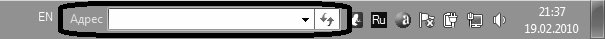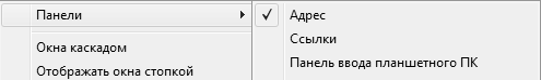 По умолчанию адресная панель отключена. Чтобы включить ее отображение, необходимо в контекстном меню панели задач в подменю Панели включить команду Адрес (рис. 3.16).