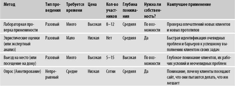 Однако подобно всем эмпирическим правилам эвристические оценки не гарантируют правильных ответов, особенно по сложным проблемам. Не забывайте, что исследователи, проводящие проверки, разработчики и другие эксперты, участвующие в оценке, имеют прямое отношение к данному веб-сайту. Они непроизвольно пытаются использовать собственные рекомендации и опыт, но они не клиенты. Следовательно, эвристические оценки лучше подходят для выявления наиболее очевидных проблем. Они могут предоставить критически важные суждения, которые позволят сузить поле от пятнадцати решений до пяти. А уже эти, оставшиеся, решения можно подвергнуть полной лабораторной или сетевой проверке применимости.