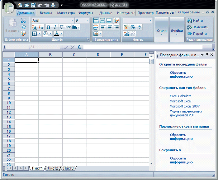 Corel Home Office поставляется на USB-устройстве, с тем чтобы его удобно было инсталлировать на компьютерах без CD-накопителя. После установки комплекс занимает 124 Мбайт на жестком диске. В его состав входят рабочие аналоги программ Microsoft Word (Corel Write), Excel (Corel Calculate) и PowerPoint (Corel Show), имеющие сокращенный набор функций. По умолчанию все они открываются с ленточным интерфейсом в стиле Office 2007, но позволяют легко переключиться на более традиционный интерфейс с меню. В любой программе можно открывать файлы в новейших форматах Microsoft при условии, что они не слишком велики и сложны. Кроме того, из каждого компонента комплекса можно сохранять файлы в формате PDF без вспомогательных программ.