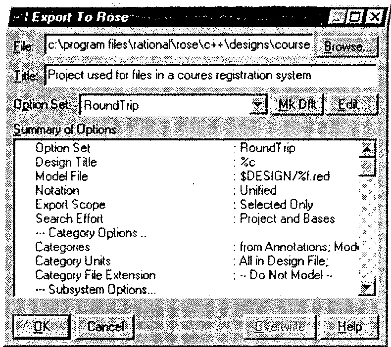 4. Щелкните по кнопке OK или Overwrite (Заменить) для экспорта данных в Rational Rose.
