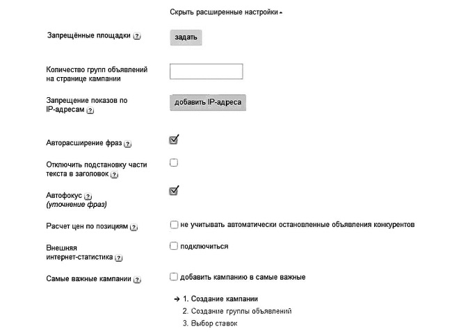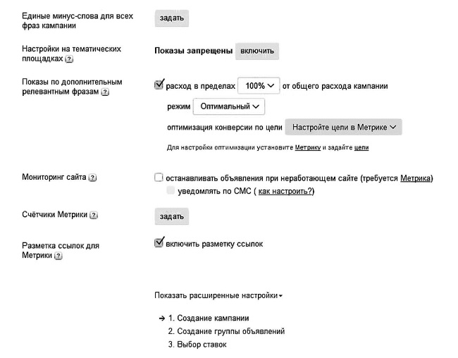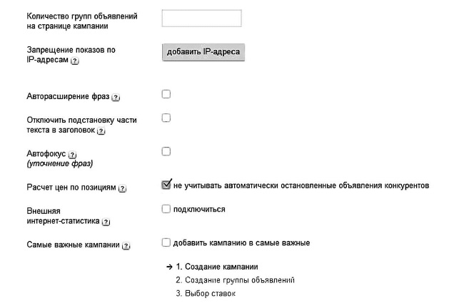 – Расчет цен по параметрам. Этот параметр может сберечь до 50 % рекламных средств, поэтому необходимо поставить галочку.