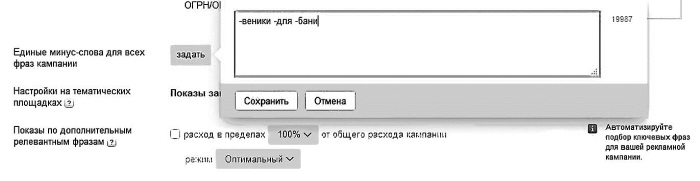 В Показы по дополнительным релевантным фразам убираем галочку. Умные люди говорят, что это приводит только к ухудшению показателей рекламной кампании и увеличению рекламного бюджета. Поэтому это нужно отключать. Релевантные фразы – это такие фразы, которые очень близки по смыслу или дополняют друг друга. Например, такие фразы, как самолет и авиалайнер и самолет АНТЕЙ