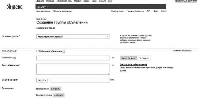 Нажимаем Далее. Выпадет переход в раздел Создание объявления.