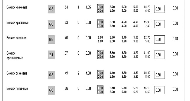 Смотрите, кленовые, орешниковые, осиновые, полынные веники стоят в гарантированном показе по тридцать копеек! Потому что очень маленькое предложение на рынке. И хоть спрос тоже невелик, но я попадаю во все показы. Ура!