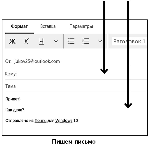 Работа с текстом в почтовой программе похожа на работу в программе WordPad, только в гораздо более сокращенном и упрощенном виде. Поэтому вы можете попробовать сами поизменять внешний вид вашего послания – «поиграть» с размером шрифта, внешним видом заголовков и т. д.