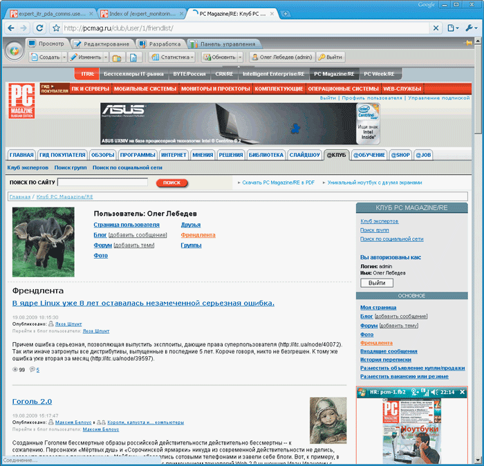 Модуль «Лента друзей» на сайте www.pcmag.ru/club
