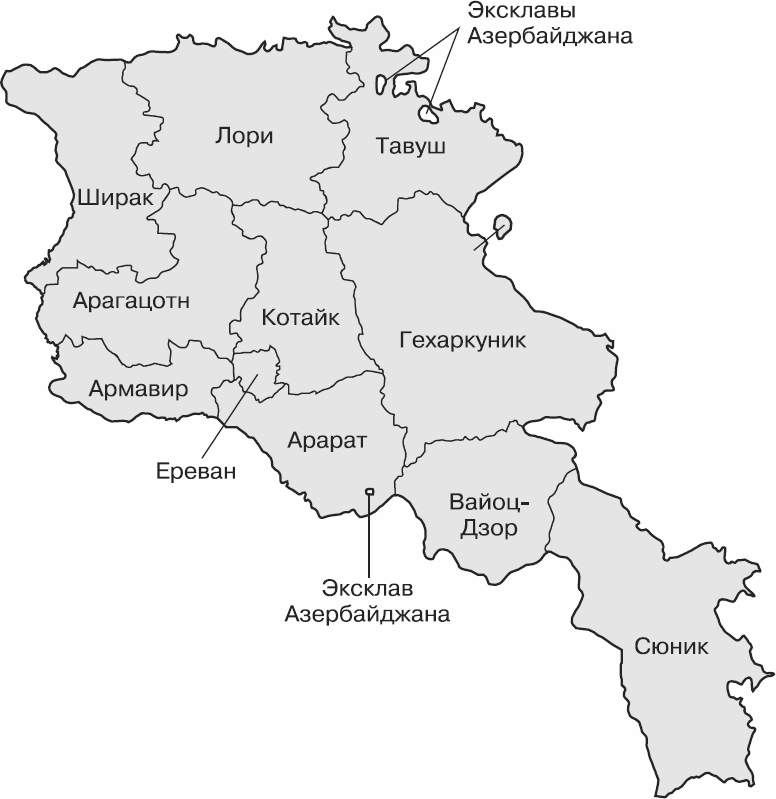Всего две из них целиком лежат внутри страны. Котайк окружен шестью областями, а столица Ереван – четырьмя. Эвристический метод говорит нам, что если все внутренние регионы имеют четное число соседей, то для раскраски карты хватит трех цветов. И мы видим, что для Армении так и получается.