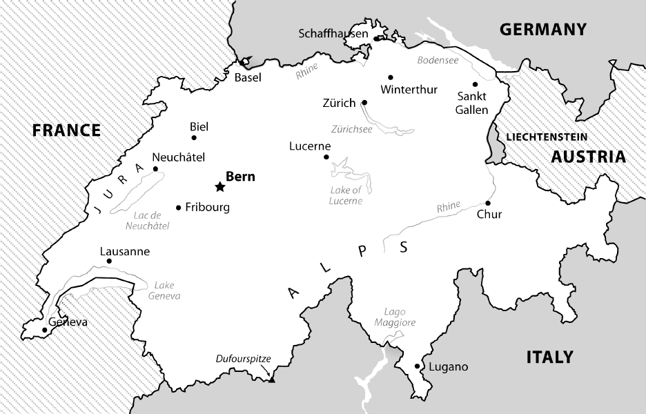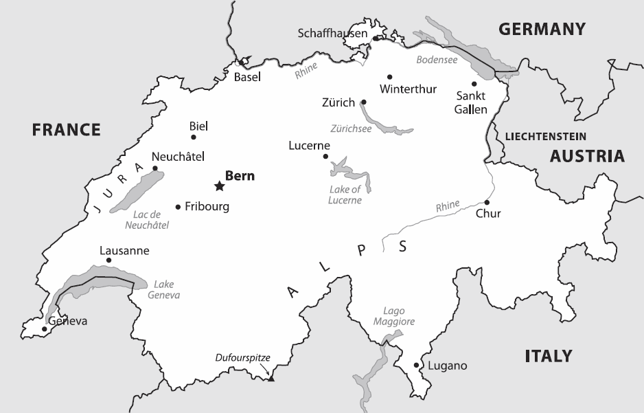 Дело в том, что Лихтенштейн вклинился между Швейцарией и Австрией и разбил их общую границу на две, поэтому Австрию нужно учитывать дважды. Оказывается, важно не количество соседних государств, а количество общих границ; у Швейцарии их шесть, а шесть – число четное. Заметим, что считаются только внешние границы, и страны, целиком лежащие внутри другого государства, не учитываются вообще (например, Ватикан внутри Италии).