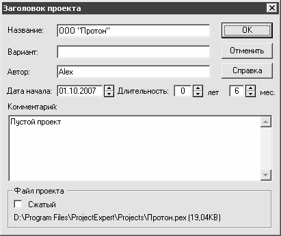 В поле Комментарий при необходимости можно с клавиатуры ввести дополнительную информацию произвольного характера, относящуюся к данному проекту (например, некоторые дополнительные характеристики проекта, и т.п.). Значение данного поля носит справочный характер, и в отчетных формах, а также в печатной форме документа, не фигурирует.