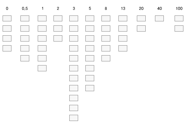 Причем оценки в 40 и 100 «пунктов» за пользовательскую историю применяются для эпиков и считаются неточными. Такая шкала относит к одному размеру истории пользователя в 20 и 21 «пункт», но к разным – задачи в 2 и 3 «пункта».