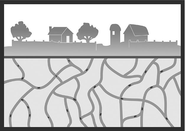 Навигация — это возможность отправлять пользователя к той информации, которую вы хотите показать. Горизонтальная навигация — основная особенность стандартного сайта. Она, как правило, органично встроена: страницы идут друг за другом, чтобы дать все больше и больше информации о каждом аспекте компании, продукте или услугах, пока структура сайта не станет похожей на муравейник — такой гигантский лабиринт туннелей (рис. 10.2). Одни туннели приводят к другим, некоторые оканчиваются тупиками. Ни один из них, кажется, никуда не ведет. Другими словами, здесь нет конечной цели, нет конструкции воронки продаж.