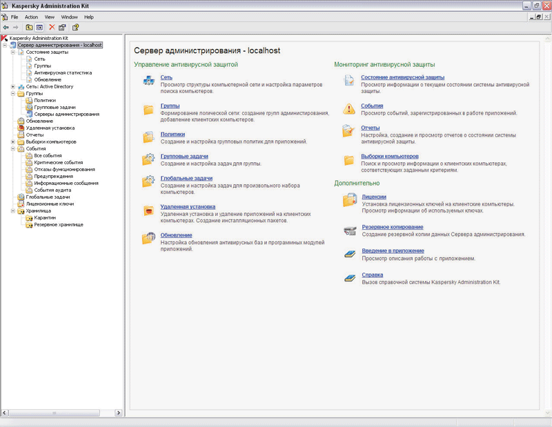 В качестве средства администрирования обновленное семейство корпоративных продуктов «Лаборатории Касперского» включает восьмую версию системы администрирования Kaspersky Administration Kit. При доработке этого продукта появились или были улучшены более сорока его функций, что позволит умелому администратору реализовать гибкую модель управления антивирусной защитой в организациях, имеющих компьютерные сети самого разного размера – от нескольких ПК до распределенных ЛВС со сложной иерархической структурой. Важно, что, по заявлению разработчика, Kaspersky Administration Kit 8.0 стал проще в установке и менее требователен в отношении временных затрат на организацию системы защиты и управление ею. В результате для организации, которая внедряет обновленный пакет управления, открывается возможность снизить общую стоимость владения решениями безопасности.