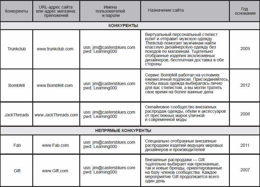 Рис. 4.3. Пример электронной таблицы с данными конкурентного исследования