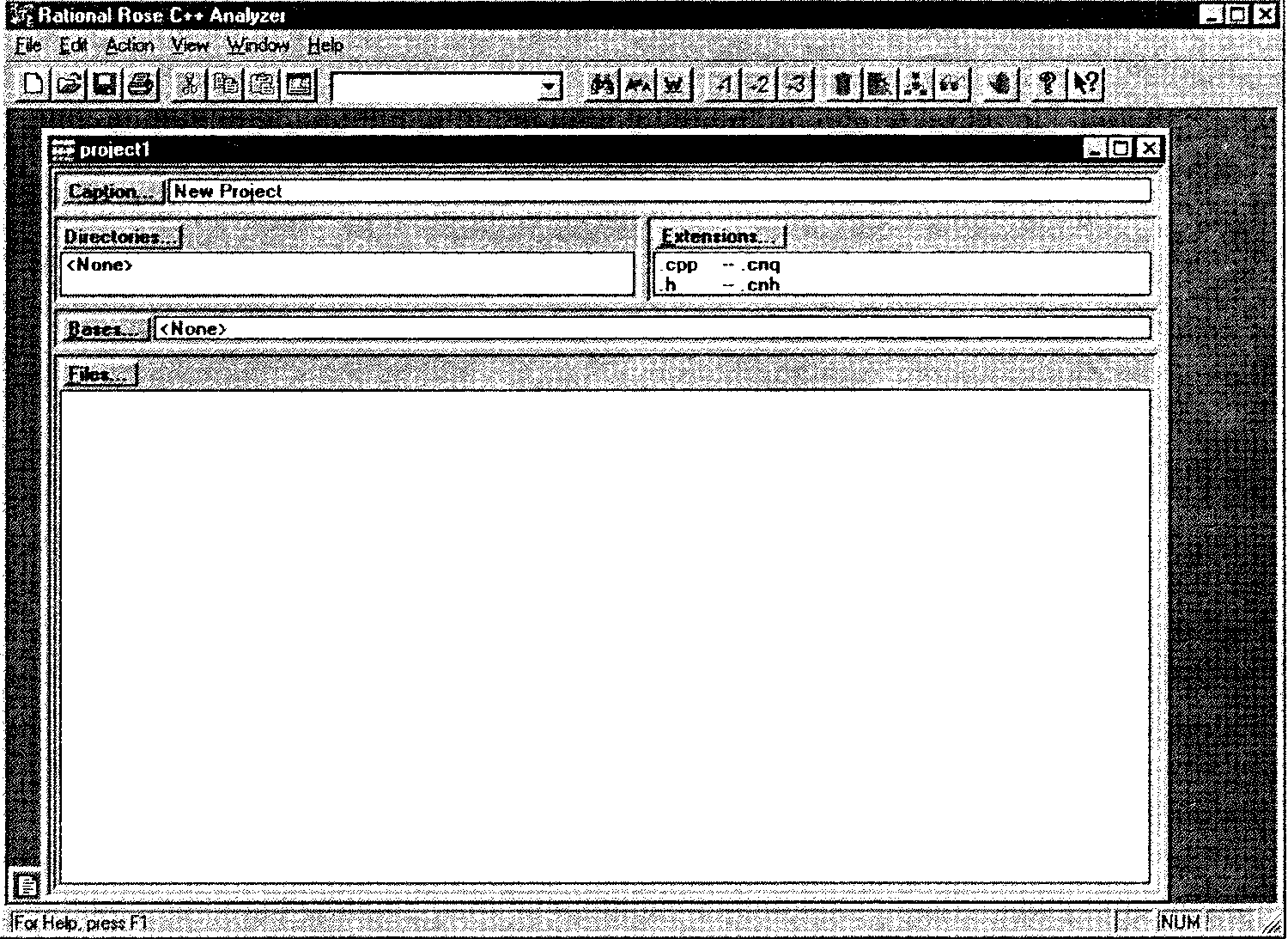 Проект в анализаторе кода C++ (Rational Rose C++ Analyzer) содержит информацию, необходимую для получения элементов проектирования по исходному коду в файлах. В проекте анализатора указываются следующие сведения: