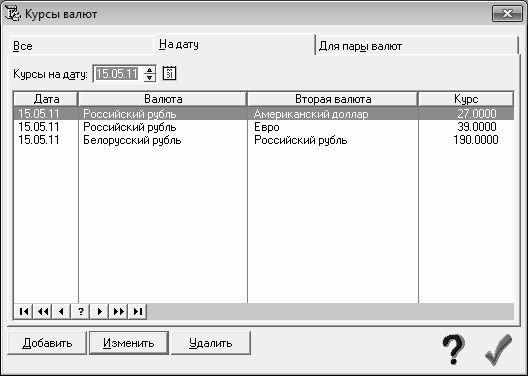Рис. 1.9. Ввод и редактирование курсов валют