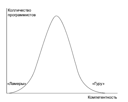 И отнюдь не из-за охлофобии. Огромное количество программистов, в первую очередь, означает, что данная технология вполне доступна не только для «середняков», на которых мир держится, но и для откровенных дилетантов. Я даже уверен, что среди дилетантов процент честно заучивающих имена местных «гуру», жаргон и прочие «паттерны» выше, чем среди остальных – для них это, прежде всего, вопрос прохождения интервью.