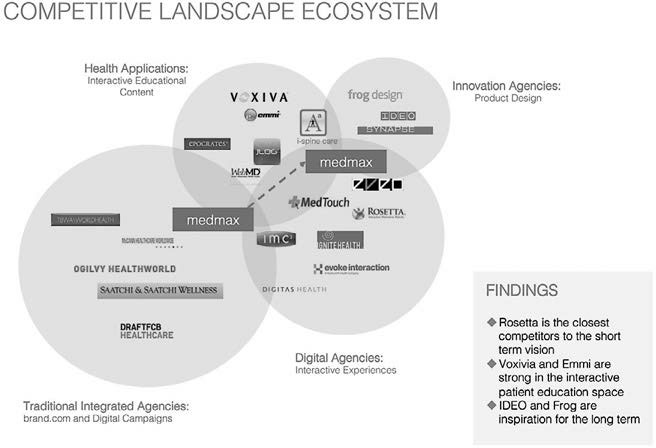 Практически в каждом проекте я строю простую карту экосистемы (рис. 10.7). Из карты видно, какие игроки присутствуют на рынке, что они предлагают и почему нравятся людям (какие возможности их отличают). Фактически это карта конкурентной обстановки, но в контексте продукта, над которым я работаю.
