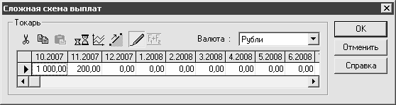 Если необходимо предусмотреть какой-то сложный, нестандартный график выплаты заработной платы, то выберите способ Сложная схема выплат. При этом станет доступной расположенная справа кнопка Схема, с помощью которой осуществляется переход в режим тонкой настройки графика выплат. При нажатии данной кнопки на экране открывается окно, изображенное на рис. 4.52.