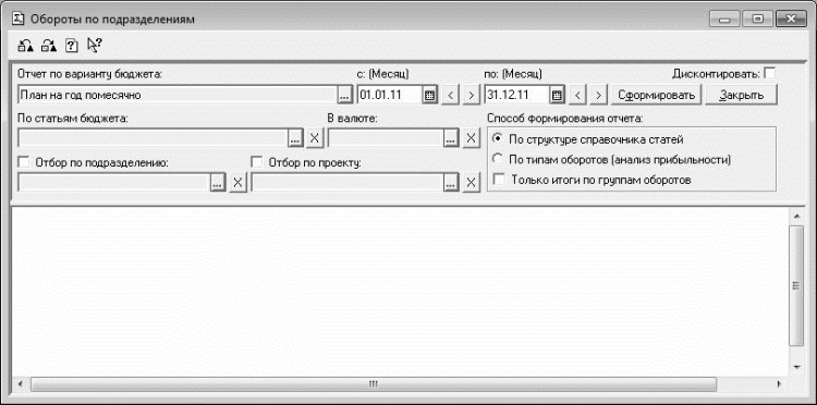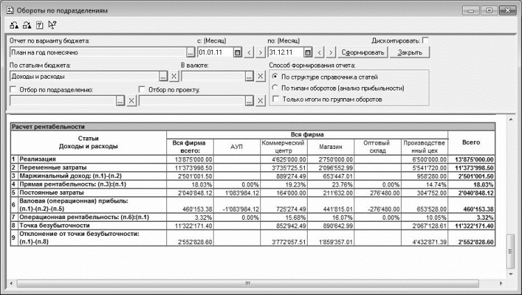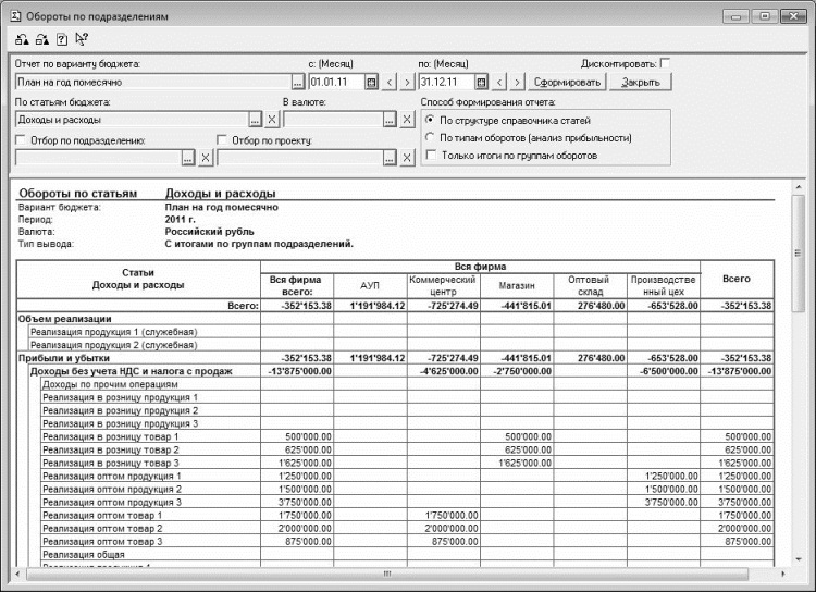 Рис. 4.27. Окно отчета Обороты по подразделениям